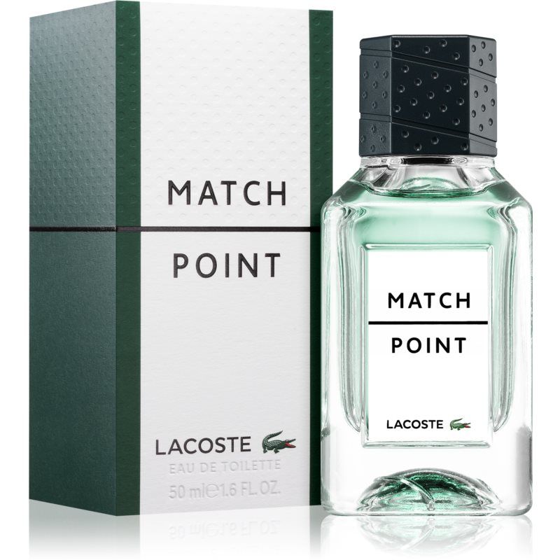 Lacoste Match Point, 50 ml, Toilettivedet Miehille, Älä menetä vauhtia edes vaativan päivän päätteeksi! Toilettivesi miehelle Lacoste Match Point on värikäs yhdistelmä tuoksuaineita, joista nautit keskeytyksettä ja jotka pitävät sinut juuri oikeassa vireessä. puumainen tuoksu kukkaistuoksu aromaattinen tuoksu yrttisillä vivahteilla tuo esiin seksikkyyden ja luonnollisen miehekkyyden päivittäiseen käyttöön sopiva tuoksuArvostelut
